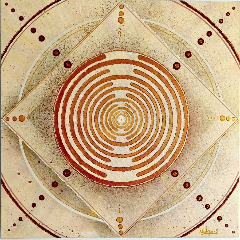 Captivée par ce motif circulaire, se rapprochant d’un labyrinthe, que l’on retrouve sur les antennes de Lakhovsky, j’ai voulu en faire un tableau.