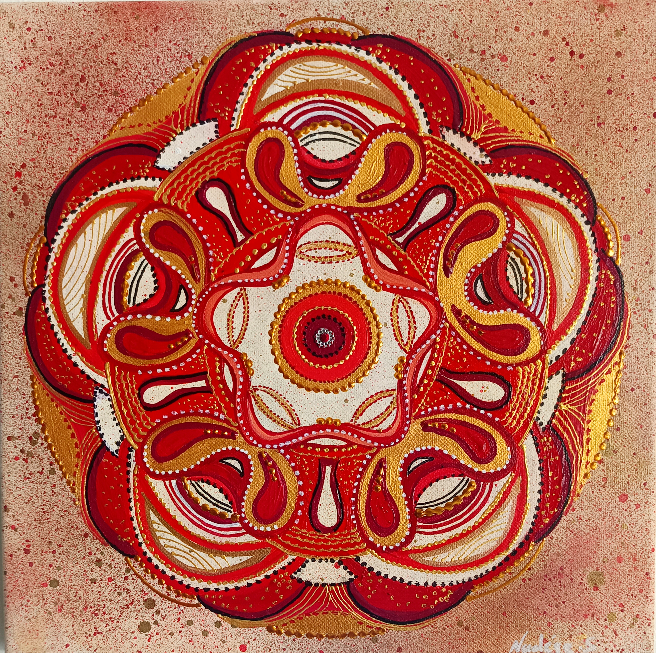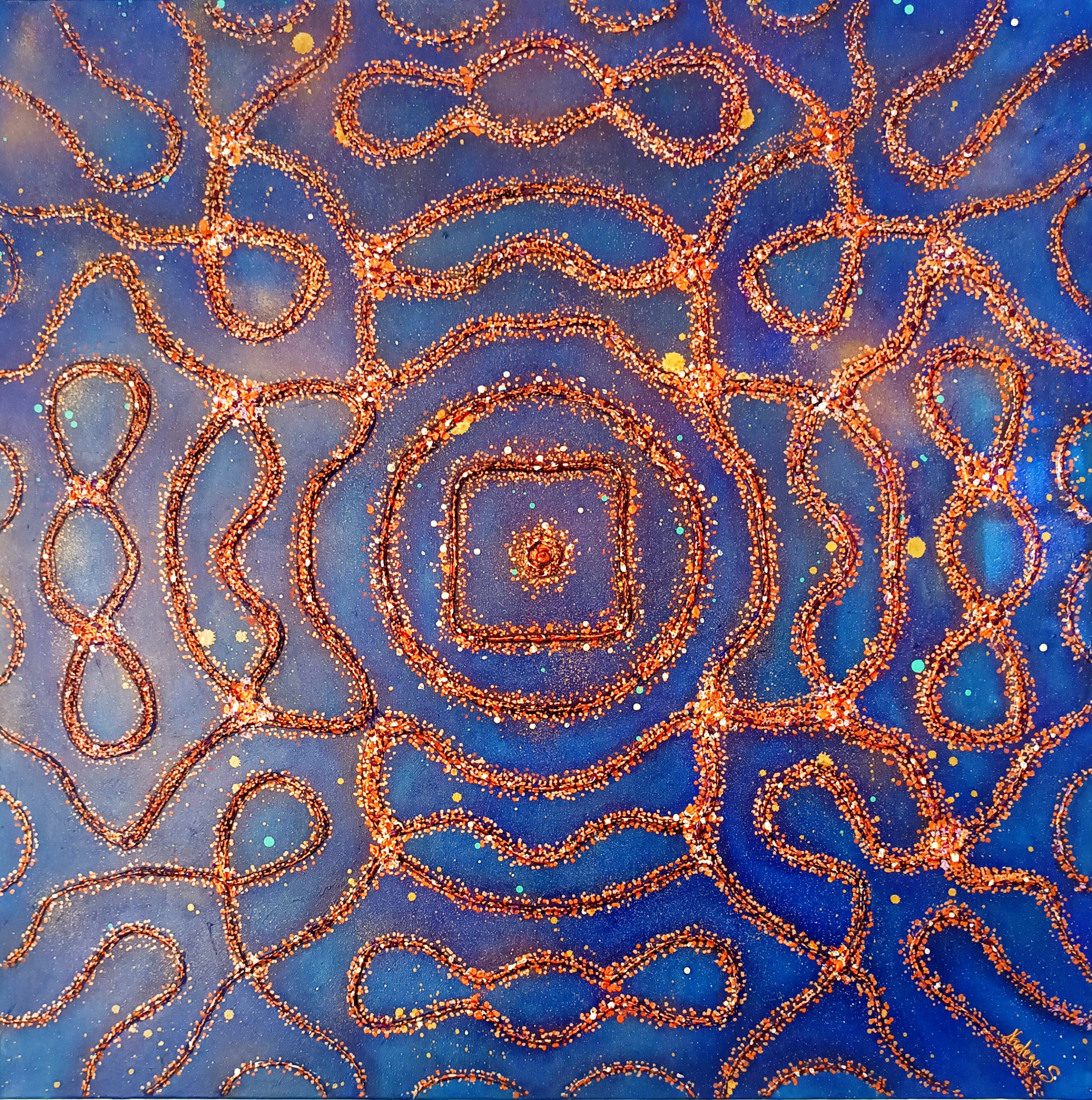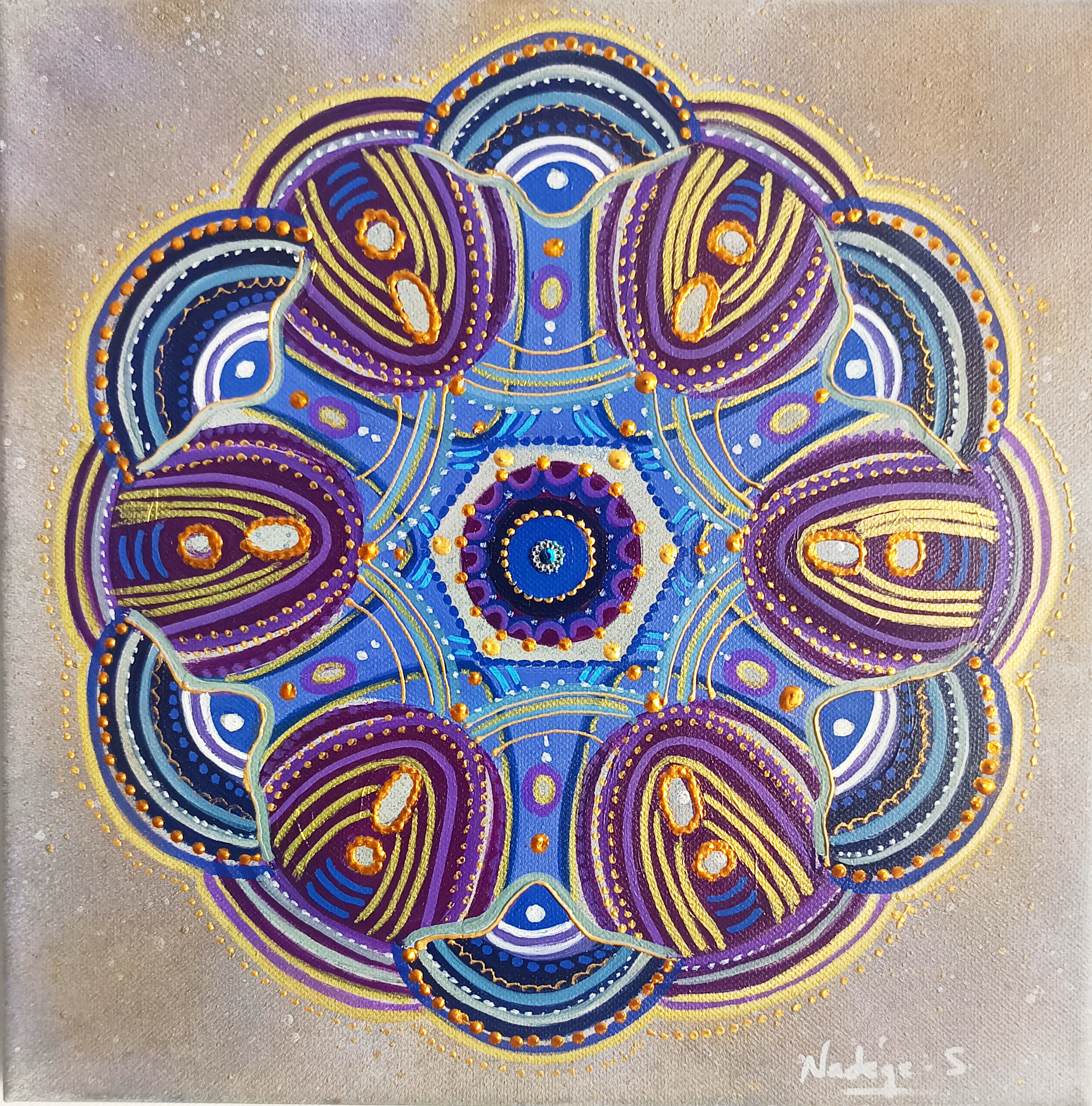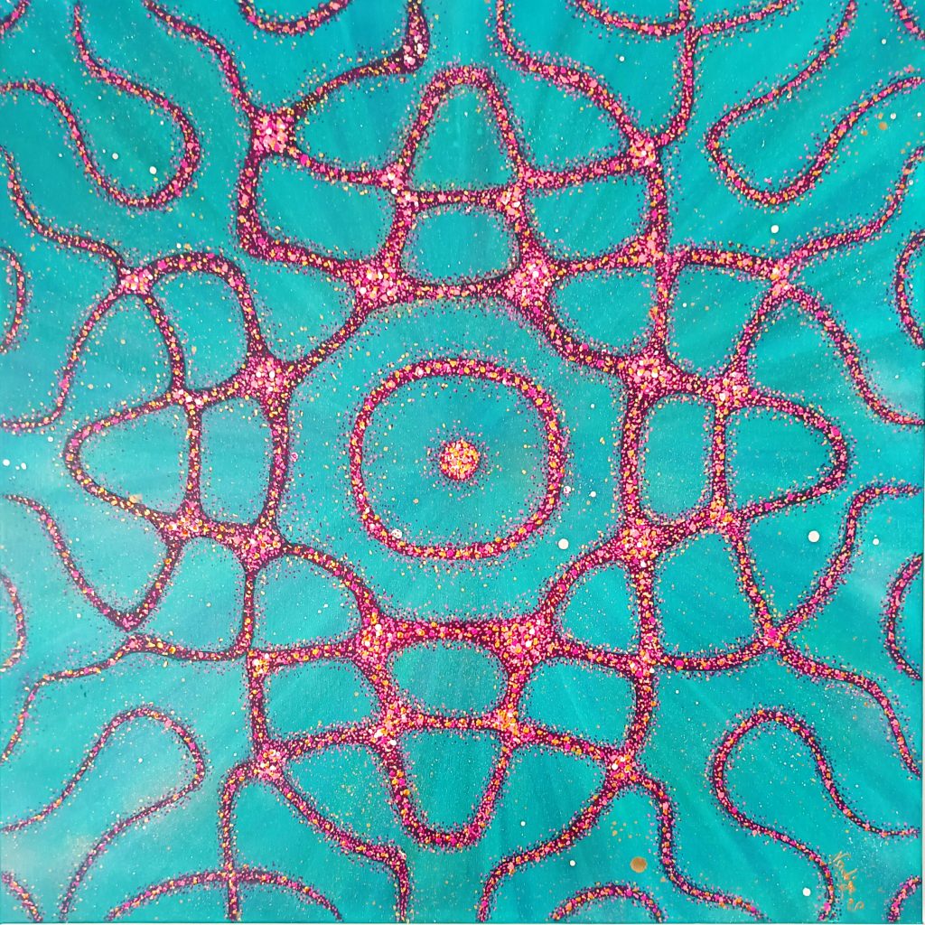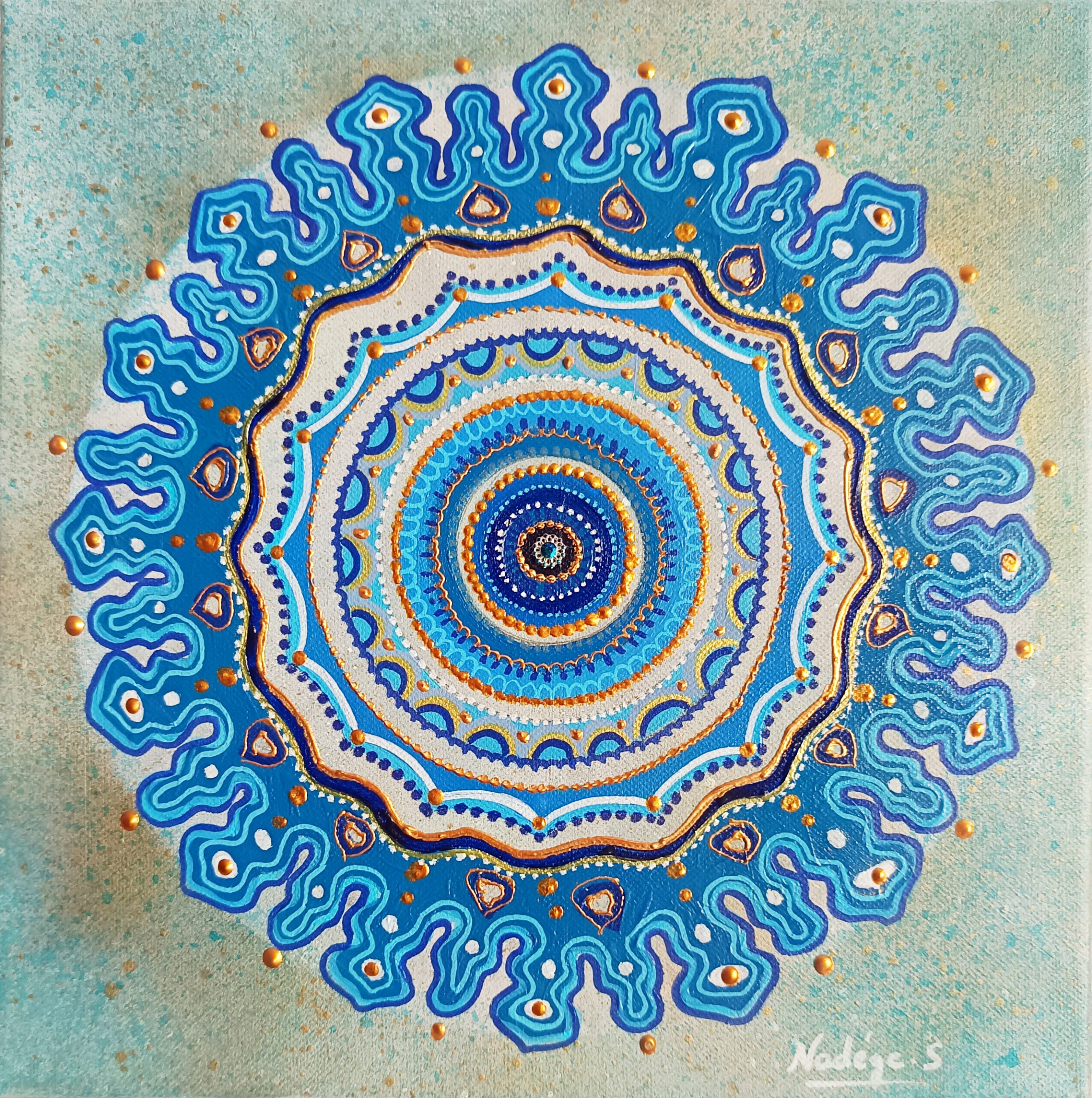 Ces figures ont été observées par la suite avec des générateurs de fréquences, dévoilant des motifs de grande complexité, symétriques et centrés, qui m’ont inspirée pour la réalisation de ces deux plus grandes toiles.