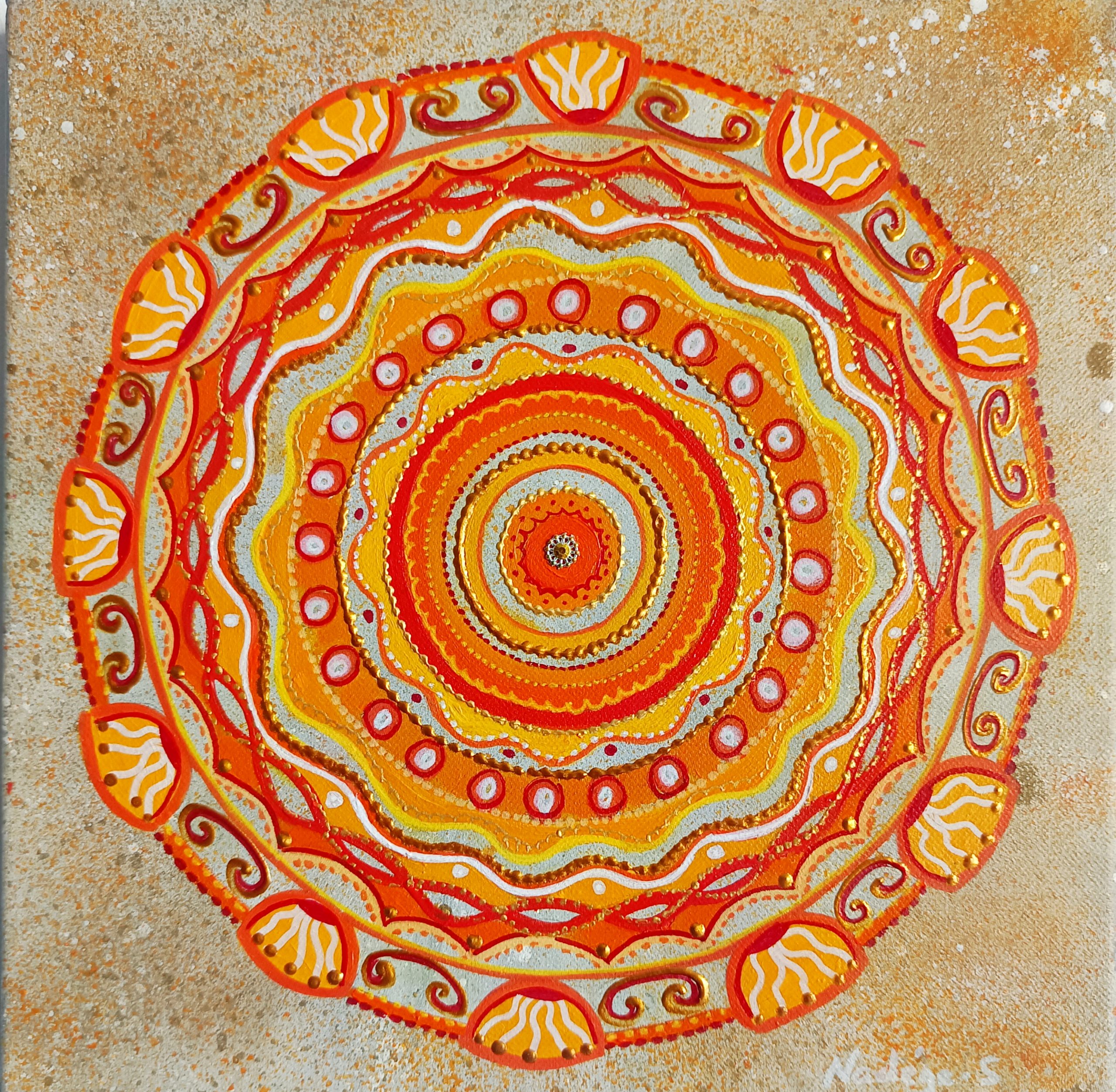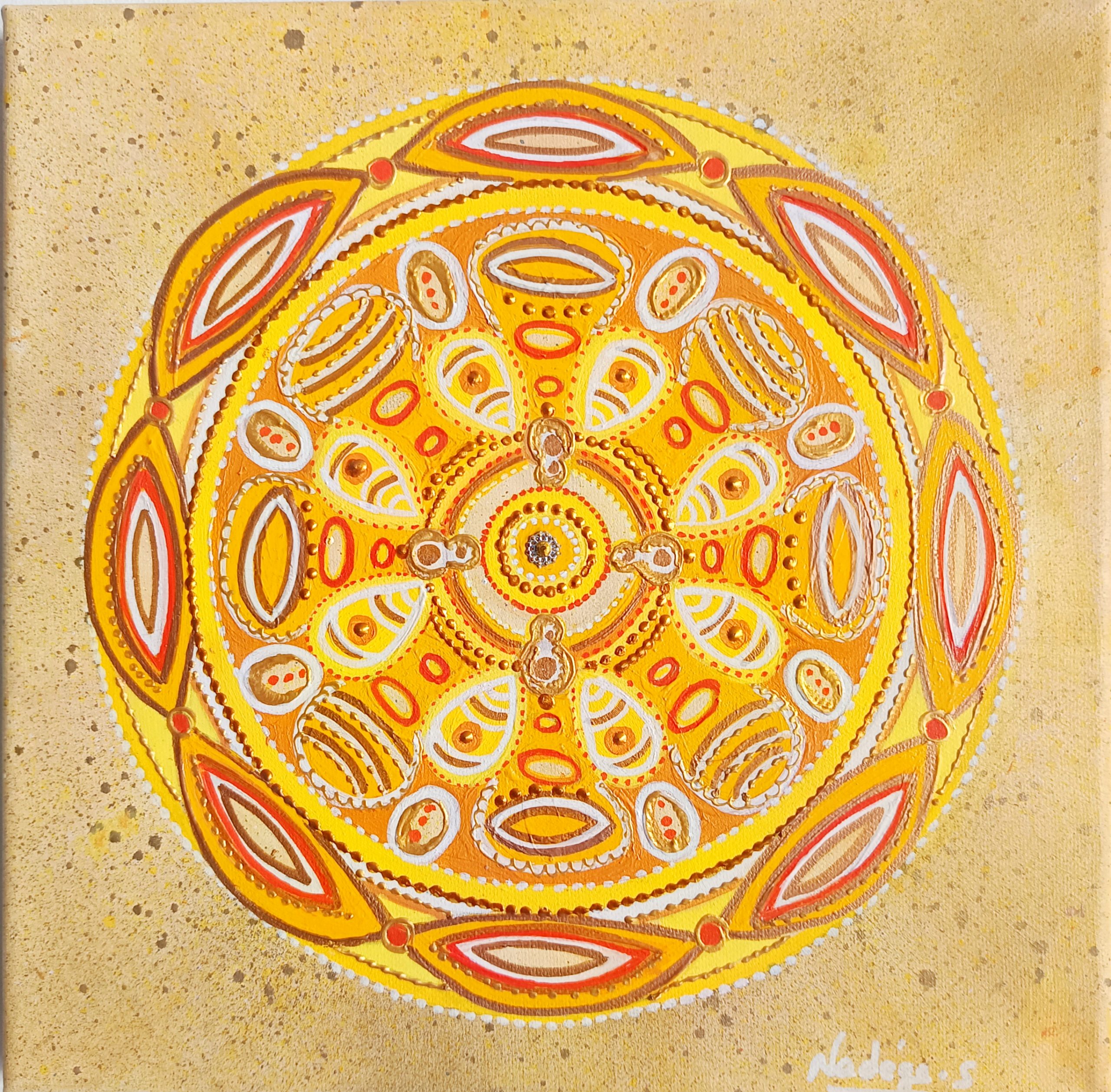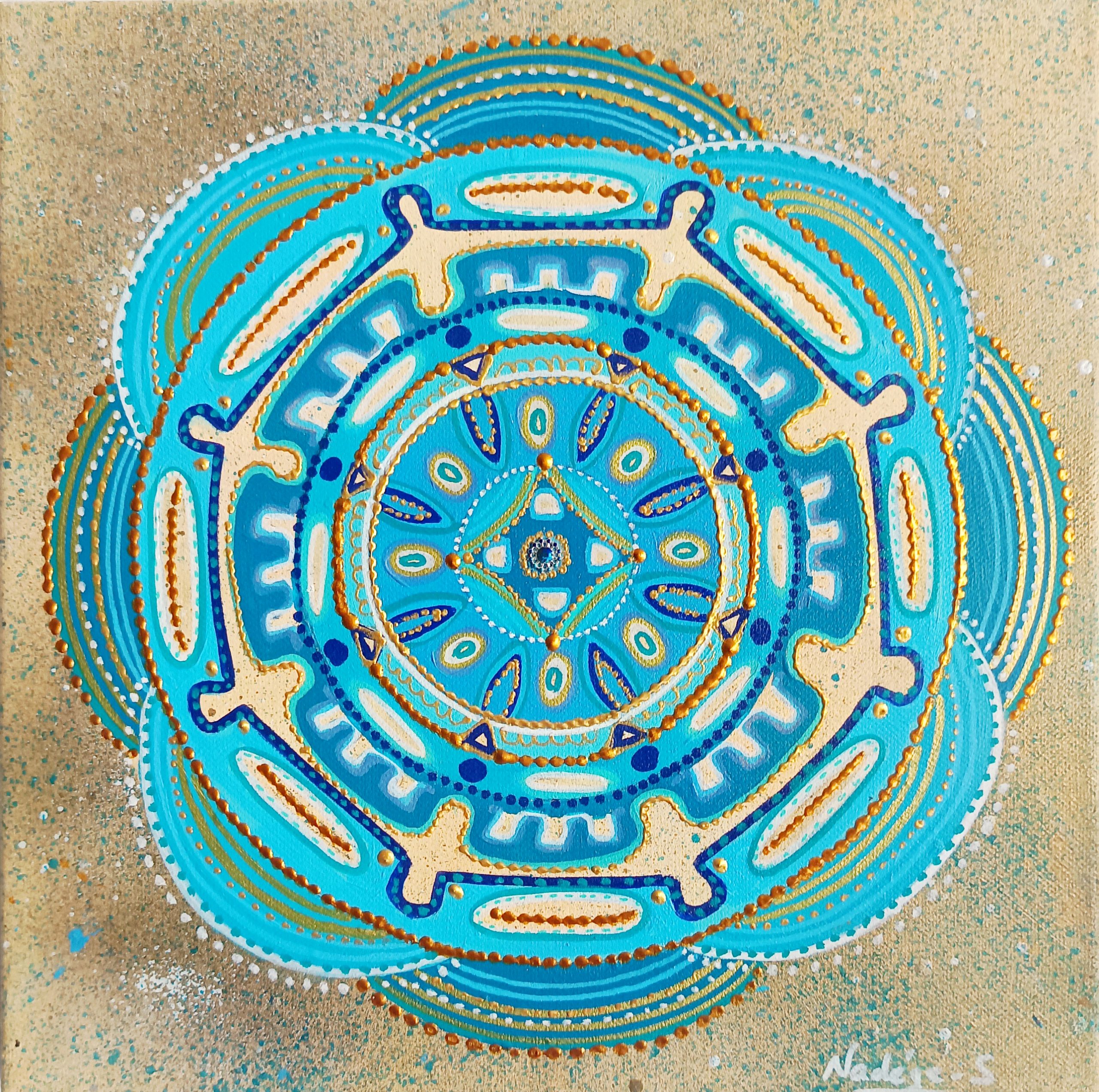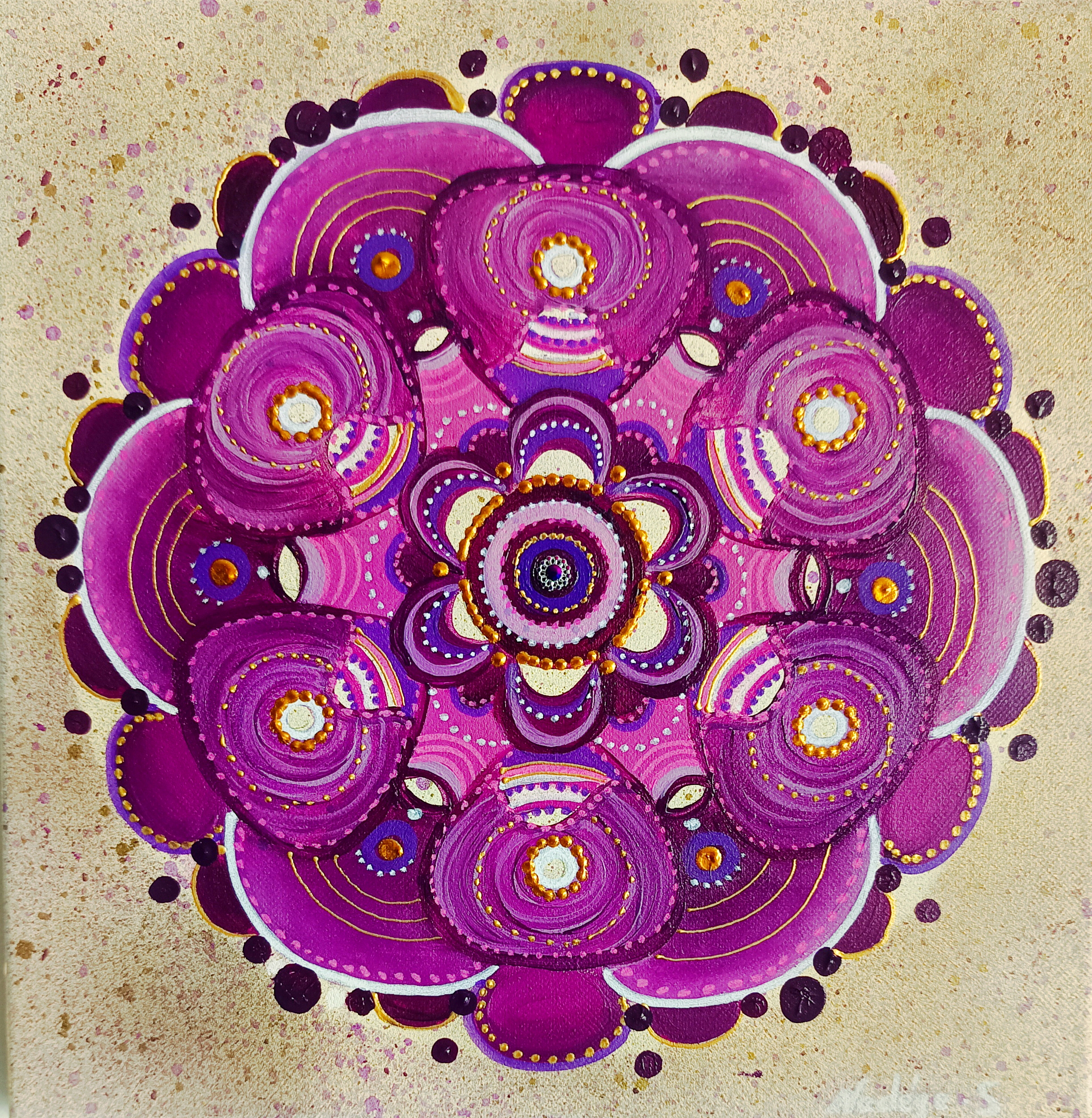 Ces figures ont été observées par la suite avec des générateurs de fréquences, dévoilant des motifs de grande complexité, symétriques et centrés, qui m’ont inspirée pour la réalisation de ces deux plus grandes toiles.