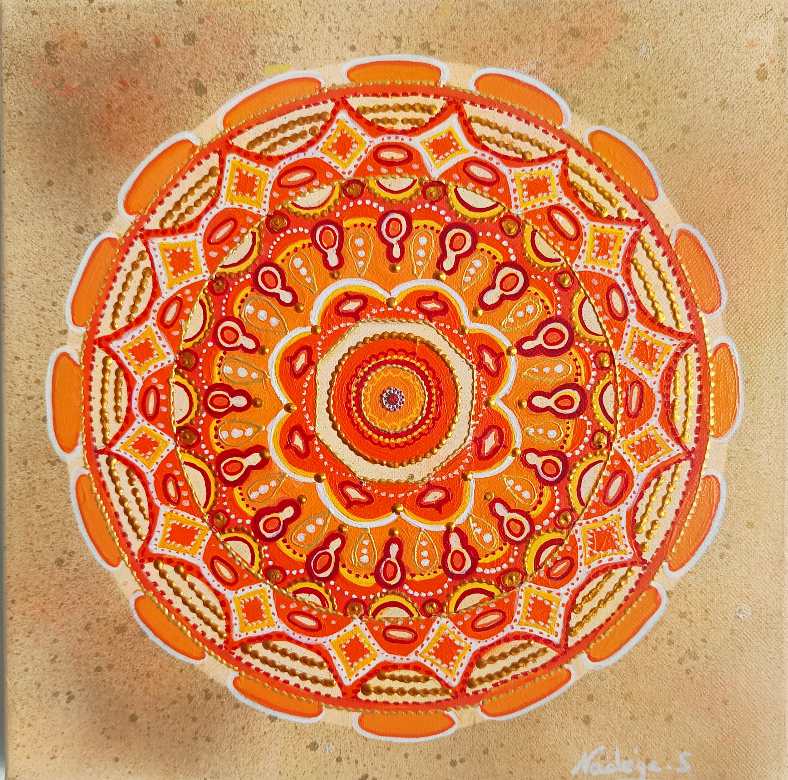 Il en est résulté des formes semblables à des mandalas qui m’ont beaucoup inspirée et que j’ai réinterprété pour réaliser cette série, mettant en image et en couleur chacune des notes.
